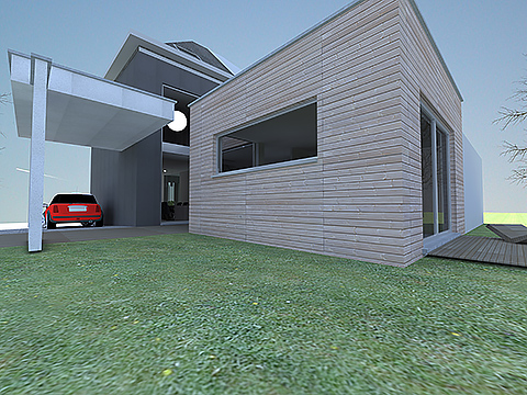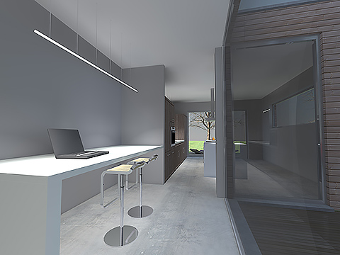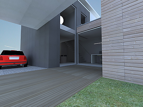 Bij de verbouwing van deze half open woning werd gezocht naar een functionele indeling binnen de beperkte ruimte. Door het toevoegen van een patio, als hart van de woning, werd de lichtinval gemaximaliseerd. De patio zorgt tevens voor een indeling van de woning, zonder de ruimtes visueel 'in hokjes' op te splitsen. Naast de woning werd een carport voorzien, die als annex van de patio een overdekte buitenruimte vormt. Het interieur wordt bepaald door de lengte van de woning, om dit effect te versterken werd aan de zijwand een kastenwand gevormd waarbij gespeeld wordt met open en gesloten (open trap, gesloten kasten voor de keuken, open home office,....).