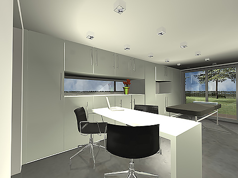 De bestaande woning werd achteraan uitgebreid en het volledig plan van de woning werd herbekeken. Op het gelijkvloers werd een ruime praktijkruimte voorzien. Op de verdieping kreeg de keuken een open karakter met zicht op de tuin. Op de tweede verdieping werd gezocht naar een praktische indeling voor de slaapkamers en badkamer. De gehele woning werd ook in een nieuw (witte crepi) jasje gestoken.