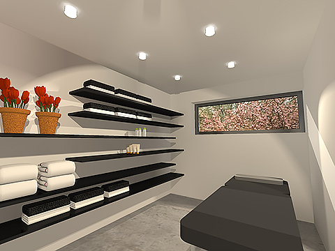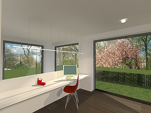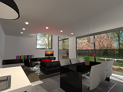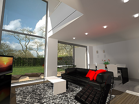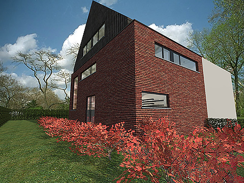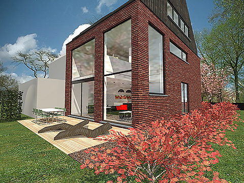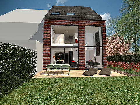 Er werd 1 strakke blok gevormd waarin alle ruimtes werden voorzien. De achtergevel werd zoveel mogelijk beglaasd om op die manier zoveel mogelijk licht in de woning binnen te laten, dit effect werd versterkt door de vide. Op het gelijkvloers werden naast de klassieke leefruimtes tevens een beperkte praktijkruimte voorzien. Op de verdieping werden de slaapkamers en badkamers geschakeld langs heen een ruime nachthal, deze nachthal mondt uit in een home office die via de vide rechtstreeks contact heeft met de gelijkvloerse ruimtes.