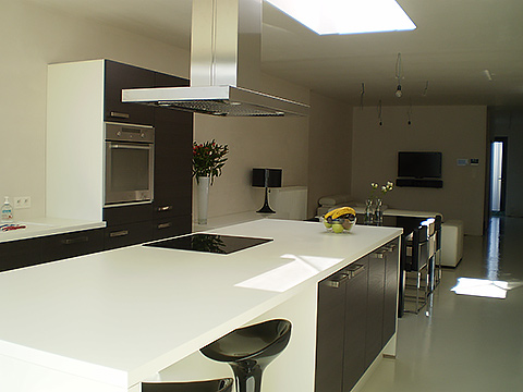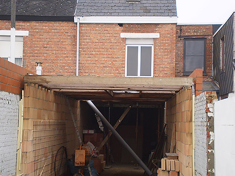 De woning werd volledig gestript, en de koterij werd afgebroken om maximaal van het terrein gebruik te kunnen maken. Hierdoor ontstond er op het gelijkvloers een ruimte van 18m lang en 4m breed, op de verdieping werd een oppervlakte van 12m op 4m gerealiseerd. Doordat deze woning zeer lang en smal is, is gezocht om zoveel mogelijk natuurlijk daglicht in de woning binnen te trekken, dit werd op het gelijkvloers gerealiseerd door enerzijds zo weinig mogelijk binnenmuren te plaatsen (open leefkeuken en leefruimte, loftstijl), zodat het licht diep in de woning kan binnendringen, en anderzijds door de vrije gevels (voor- en achtergevel), waar mogelijk zo transparant mogelijk te maken. Een logische schikking van de ruimtes maakte van deze smalle rijwoning een aangename leefomgeving.