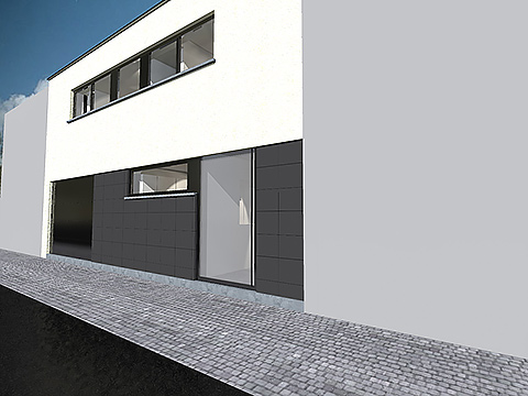 De voorgevel werd bewust zeer strak en sober gehouden, om storende geluid en inkijk te voorkomen. De achtergevel, daarentegen, werd zoveel mogelijk beglaasd. In het interieur werd gezocht naar een indeling waarbij de ruimtes in elkaar overvloeien, maar waarbij elke ruimte toch zijn eigen karakter en sfeer meekrijgt. Op de bovenverdieping werd gespeeld met de flexibiliteit van de woning, zo kunnen de kinderkamers omgevormd worden tot een bureauruimte, een wasruimte met dressing of een polyvalente kamer.